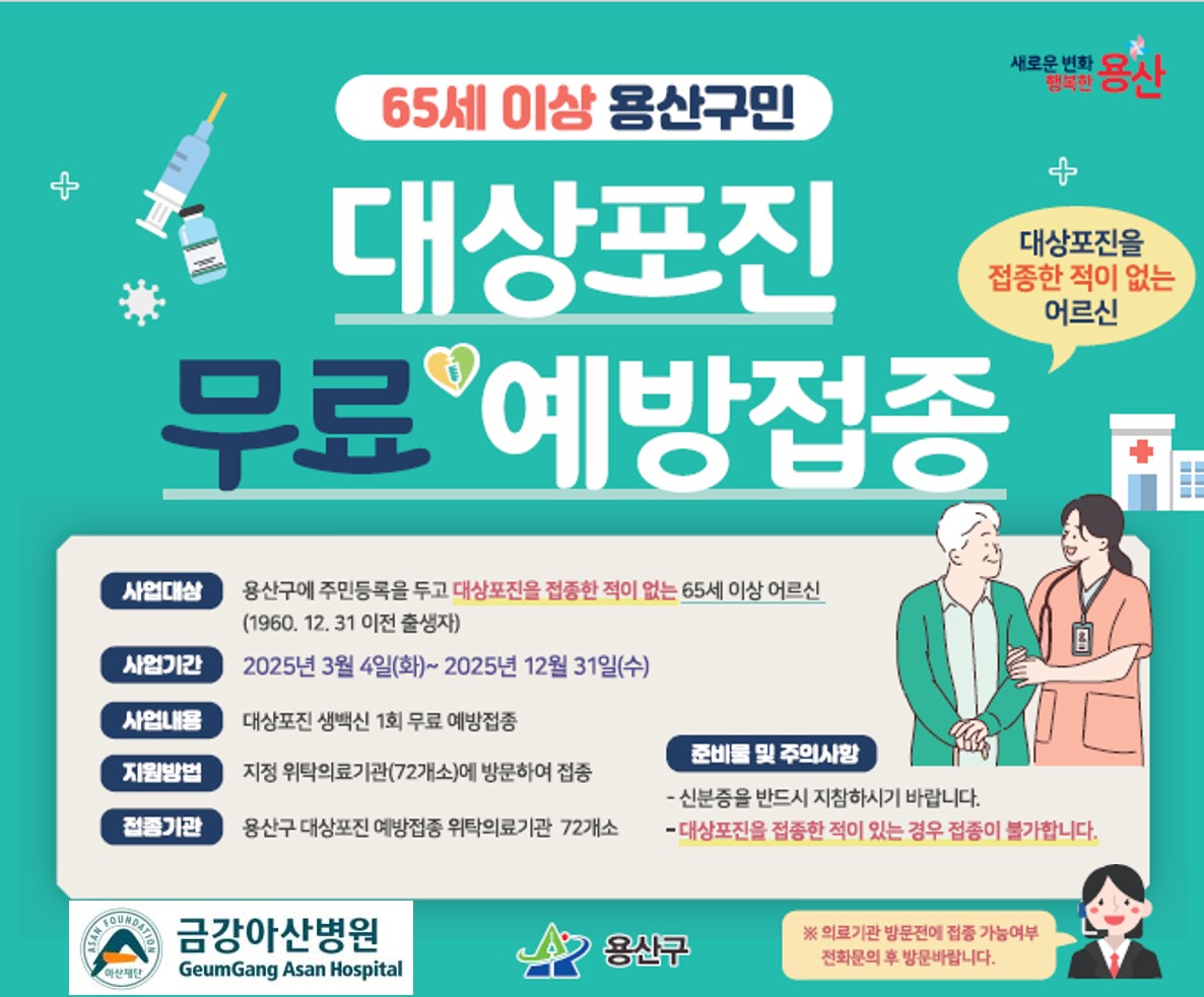 2025년 대상포진 무료 예방접종 안내(65세 이상 용산구민)