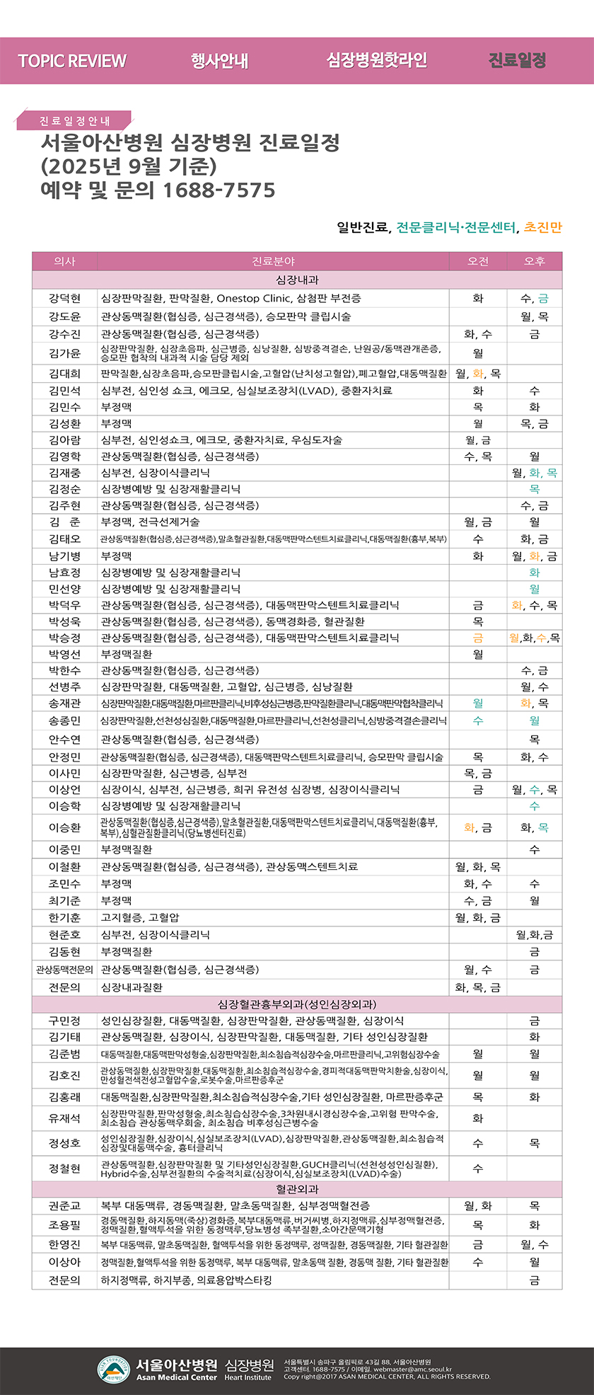 Cardiovascular Disease Update 2025년 가을호 (통권 제75호) 진료일정안내