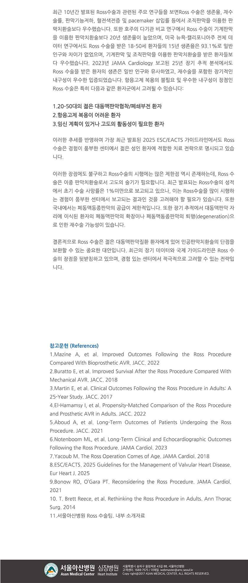 Cardiovascular Disease Update 2025년 가을호 (통권 제75호) The Ross Procedure: 젊은 대동맥판막질환 환자를 위한 또 하나의 치료 대안