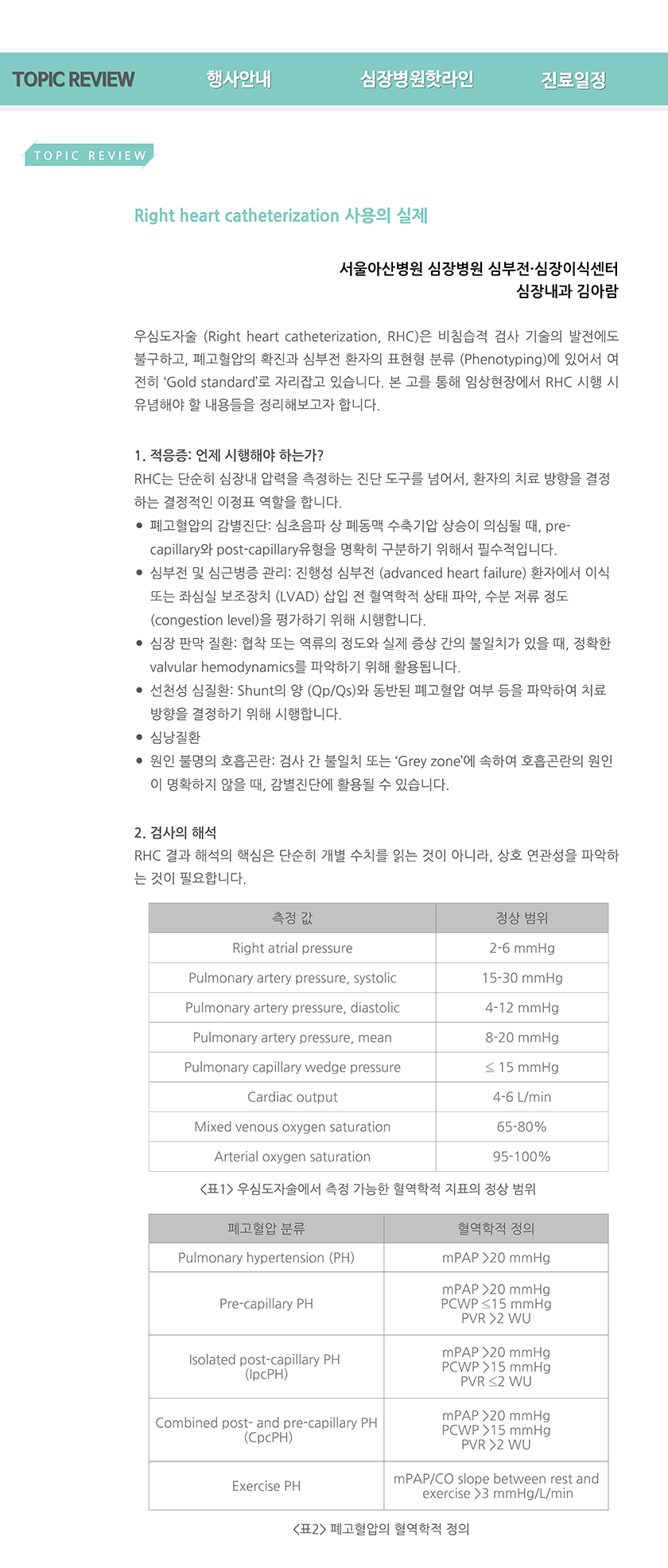 Cardiovascular Disease Update 2026년 봄호 (통권 제77호) Right Heart Catheterization 사용의 실제