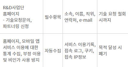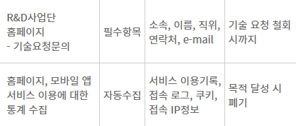 1. 개인정보 처리 목적, 수집 항목, 보유 및 이용기간